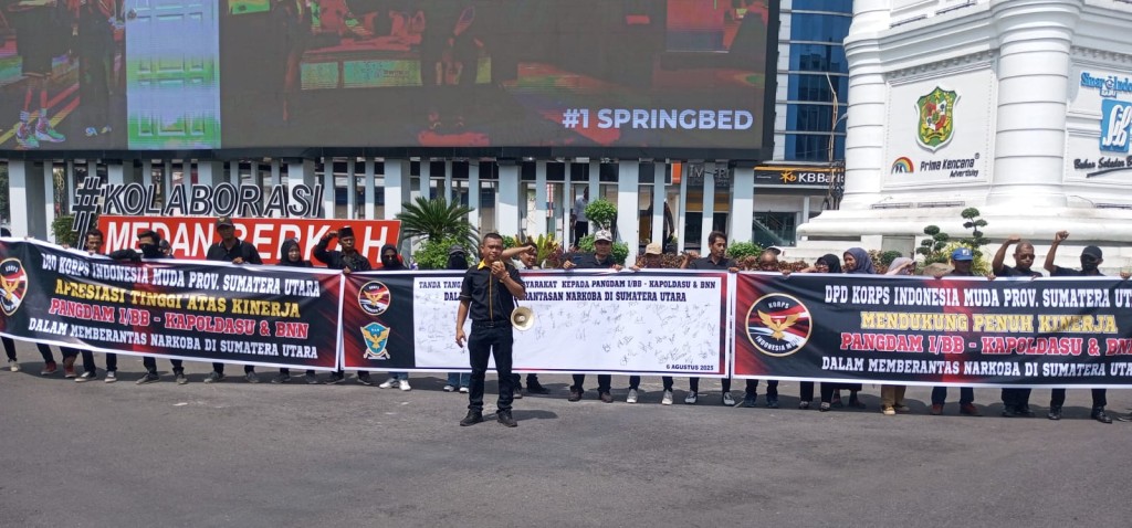 Jurnal Transparansi.com – Medan, Ratusan massa aksi yang tergabung dalam DPD KORPS INDONESIA MUDA Sumatera melaksanakan aksi damai mendukung Pangdam I BB, Poldasu dan BNN provinsi Sumatera Utara dalam memberantas narkoba, begal dan Judi Online yang marak di Sumatera Utara.