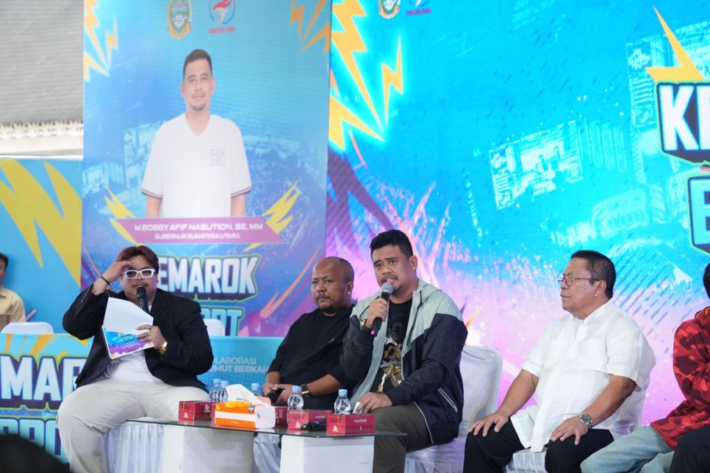 Kehadiran Gubernur Bobby Nasution mabar game Mobile Legend dengan Pro Player dalam rangkaian event ‘Kemarok Esport’ ini membuat suasana semakin semarak. Ratusan anak muda penggemar Esport yang hadir dalam acara itu, jadi saksi serunya Bobby Nasution main game.
