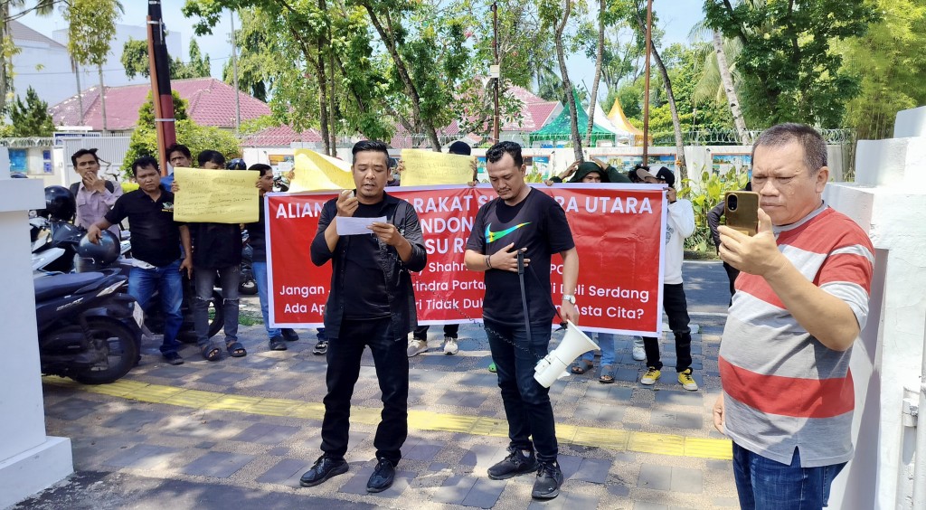 Informasi dihimpun, Rabu,27/8/2025, aksi yang di koordinatori oleh Zulhamri Daeng yang juga Ketua PAC PKB Kecamatan Medan Kota itu meminta Ketua DPD Partai Gerindra Sumut Ade Jona untuk mengevaluasi kedudukan Ketua DPRD Deli Serdang yang saat ini dipegang Zakky Shahri berikut sebagai Ketua DPC Partai Gerindra Deli Serdang.